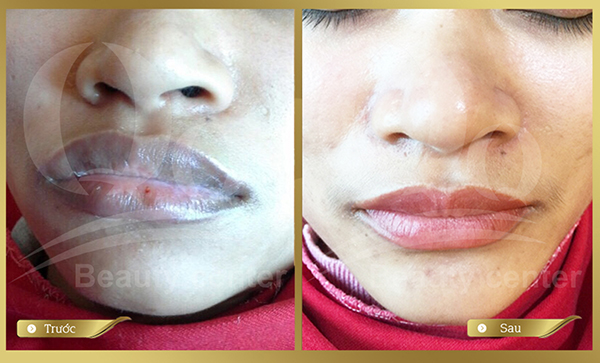 Hình ảnh trước và sau phun xăm môi